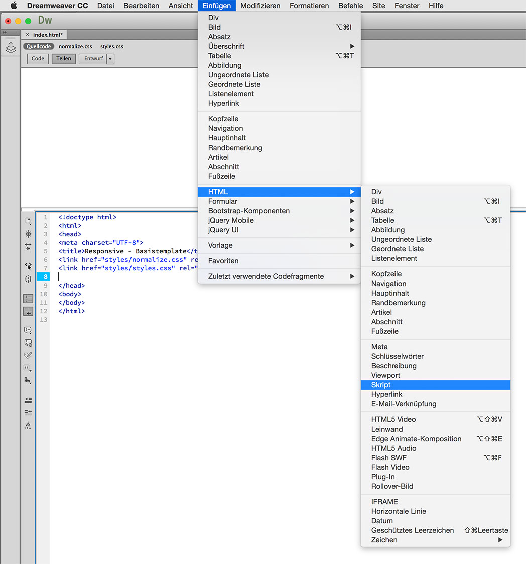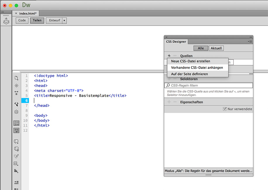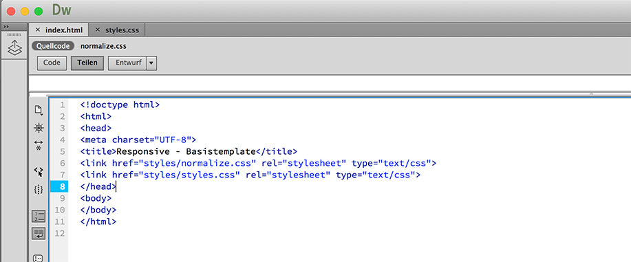 Richten Sie sich nun den Browser und die erforderliche Verzeichnisstruktur ein und starten Sie dann mit dem Aufbau der responsive Website.