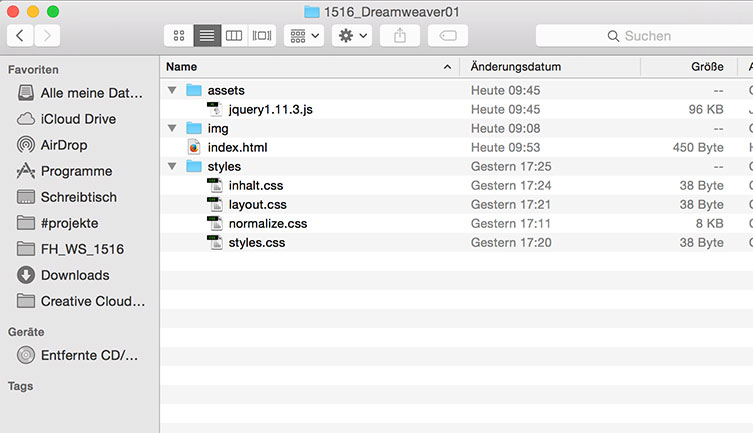 • Layout/Stil: normalize.css, layout.css, inhalt.css – Verzeichnis: styles