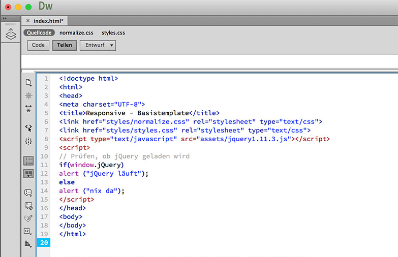 Verknüpfen sie anschließend die jQuery-Datei mit der HTML-Datei: