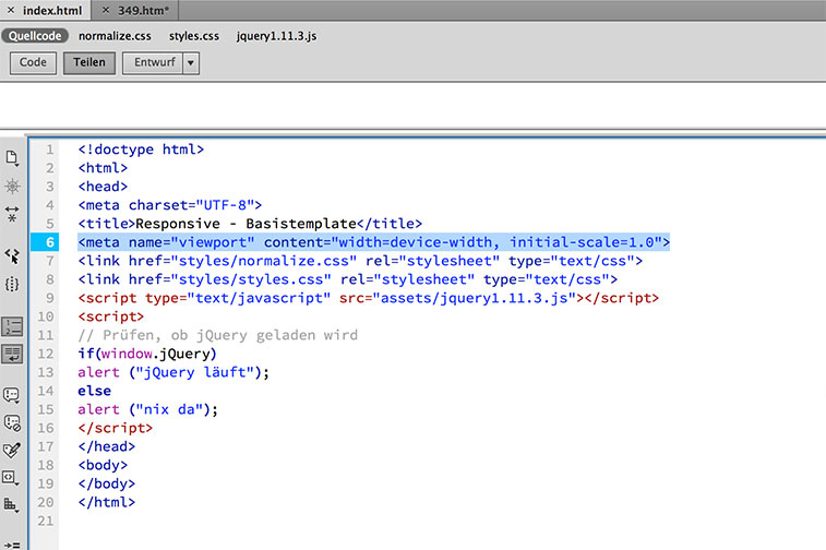- Eine Zeile HTML-Code sorgt für eine korrekte Skalierung der Website beim ersten Aufruf auf dem mobilen Gerät: